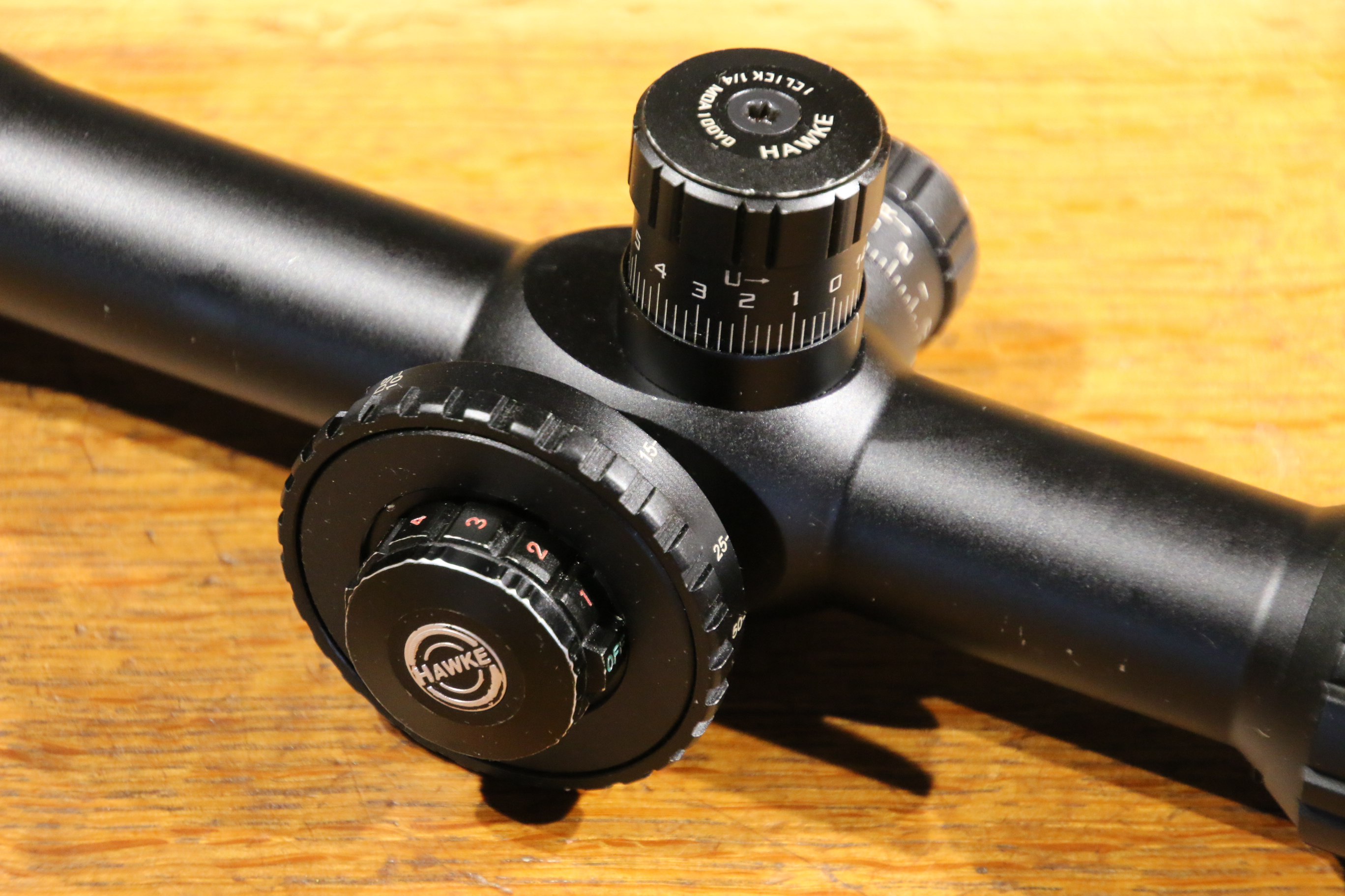 THIS IS A HAWKE SIDEWINDER IR SCOPE, THE 4.5-14 x 42, ON THE 30mm TUBE WITH THE ILLUMINATED 1/2 MIL DOT RETICLE, IN THE 2nd FOCAL PLANE.
