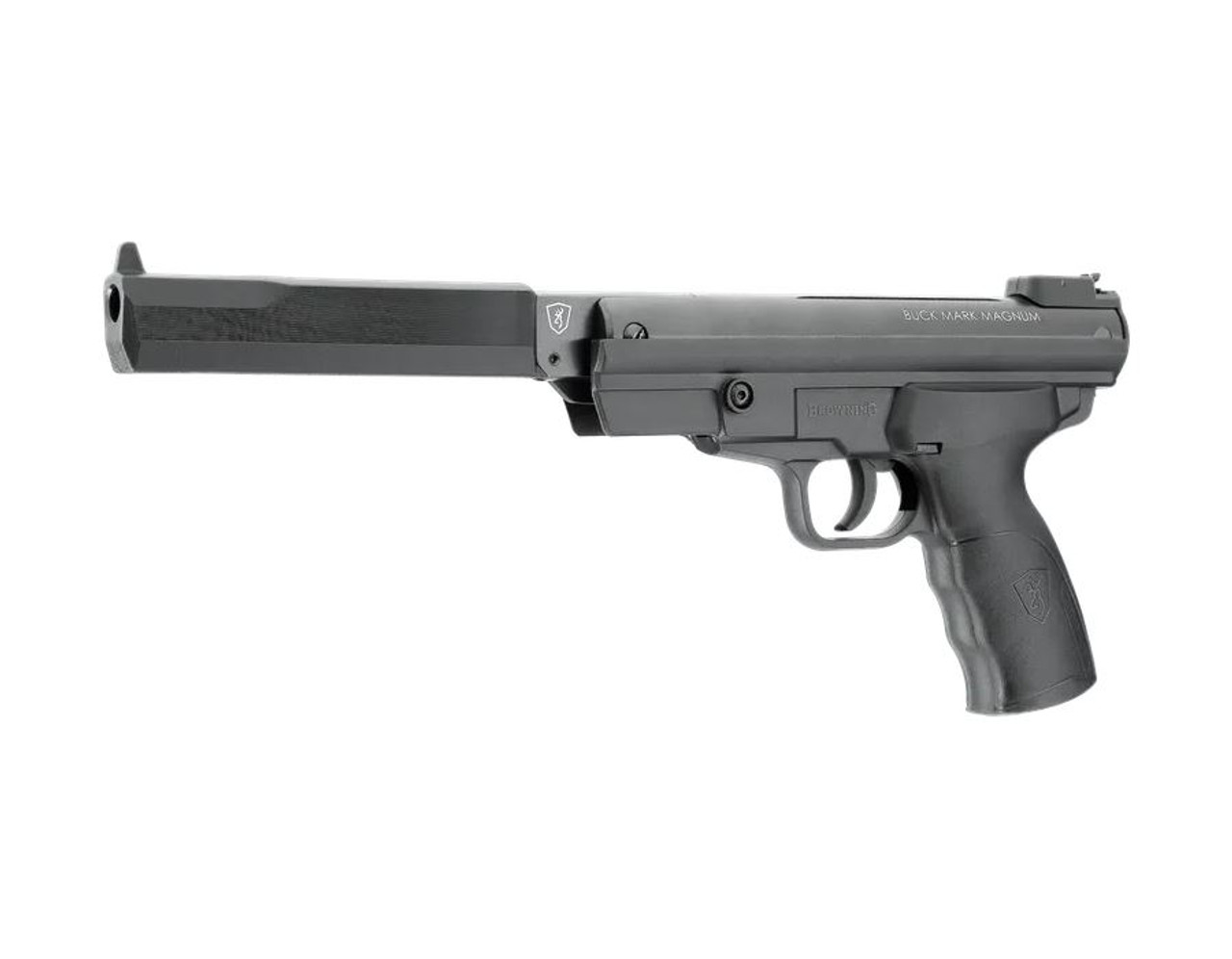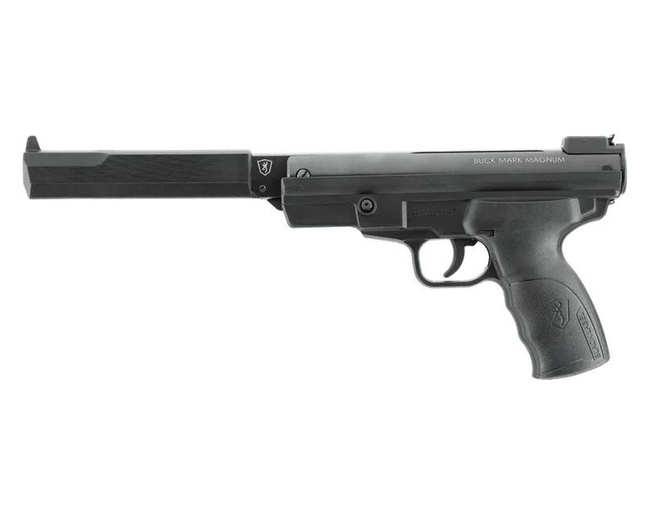 Browning Airguns Buck Mark Magnum Air Pistol .177 (4.5mm) Pellets. This is a full power magnum air pistol with break-barrel action. Admired for its first-class quality, reliability and excellent preci...