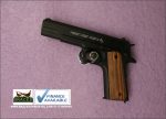 Full metal construction makes this gun just as solid as the “pellet” version. Comes with genuine walnut wood grips.