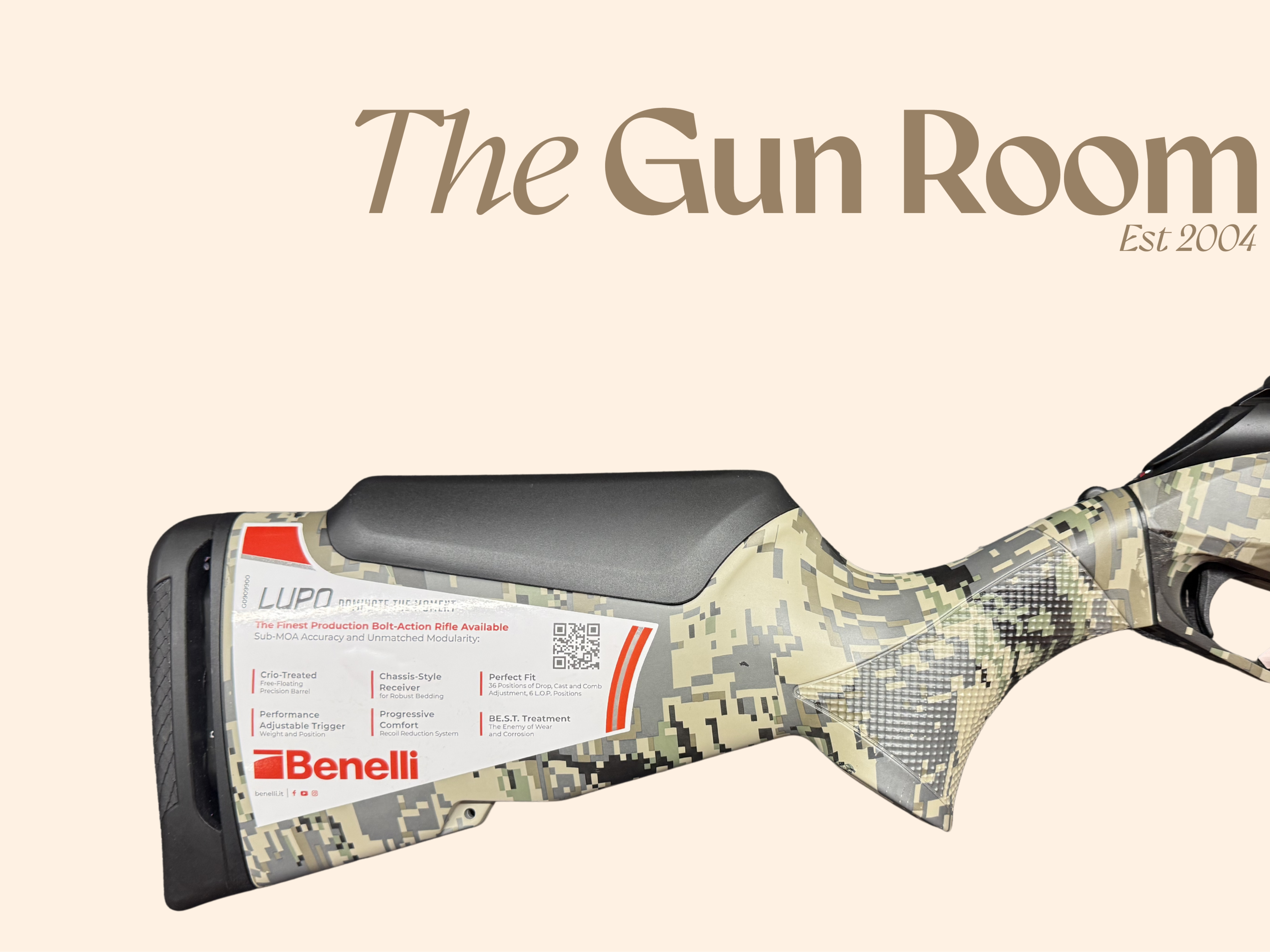 Specifications and Design The Benelli Lupo B.E.S.T Open Country Rifle is a premium sporting firearm designed specifically for the UK market. With an overall length of 46 inches and a weight of 7.1 ...