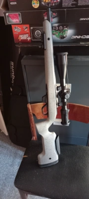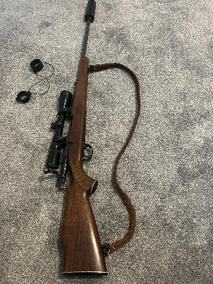 Tru-oil finished grade five pistol grip stock with slight right handed palm swell finished off with carved drop points, fitted with a rubber factory heel pad. Scroll engraved action with scroll engrav...